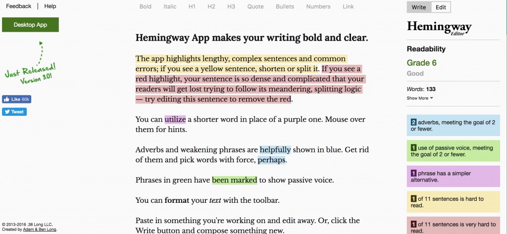 This last one is not an app per se, but rather a web-based tool that you can use. But it’s a pretty important tool especially when you’re in the editing and proofreading stage of your book. When you go to hemingwayapp.com (there’s a paid version that you can download to your computer), you just paste your text on to the browser and it will automatically give you tips on how to improve your writing. And it’s color-coded! It will tell you which sentences are too complex or if you’re using too many adverbs or if you’re using the passive voice too much, and other grammatical ways to improve what you’ve written. It even gives you a readability grade. Our only wish is that the mobile browser version will be adaptive as it’s sometimes difficult to browse through. Download it here.