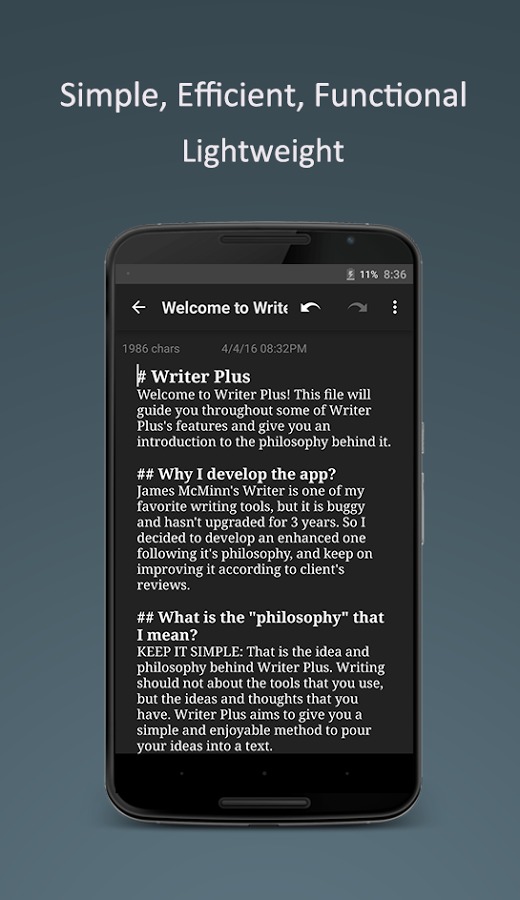 If you’re working on your very first fiction book, you need a tool that will help you keep track of all your characters, plot points, outlines and just basically help you organize your whole book. The Novelist – Write your novels app provides that exact service and just like the others on this list, it’s a minimalist, no-frills program. It has three major sections: Plot, Outline, and Organize. The Plot section is like a storyboard section where you list all your elements like themes, events, characters, locations, props. You can add status, metadata, tags, add pictures to each of the items you put here. Outline is the part where you put together the scenes from the elements in the Plot section. Lastly, Organize is when you finally put a structure to your entire story, with acts, parts, chapters, etc. Download the app here and start working on that story!
