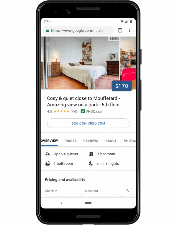 You will, of course, need to input the dates and location and then use filters you may need like price and amenities. You can also browse through photos, read reviews from previous guests, check out the rates and availability, all from the Google search page. Once you’re ready to book, you’ll have to complete the transaction on the website of the travel partner.