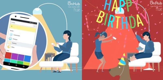 Google teamed up with Philips to deliver Philips Lighting. It’s a connected home device that can be control directly from the OnHub. It’s actually a first to not require an app to be downloaded. This way, it’s easier to control the Philips Hue lights at home. Anyone at home connected to the OnHub can control the Philips Hue lights by simply typing “On.Here” in a browser whether on a desktop, laptop, smartphone, or tablet.
